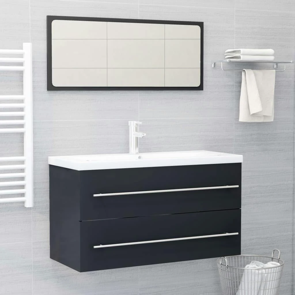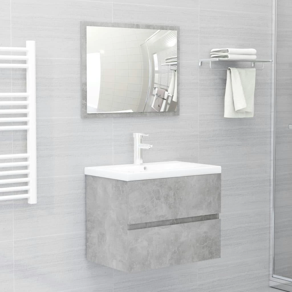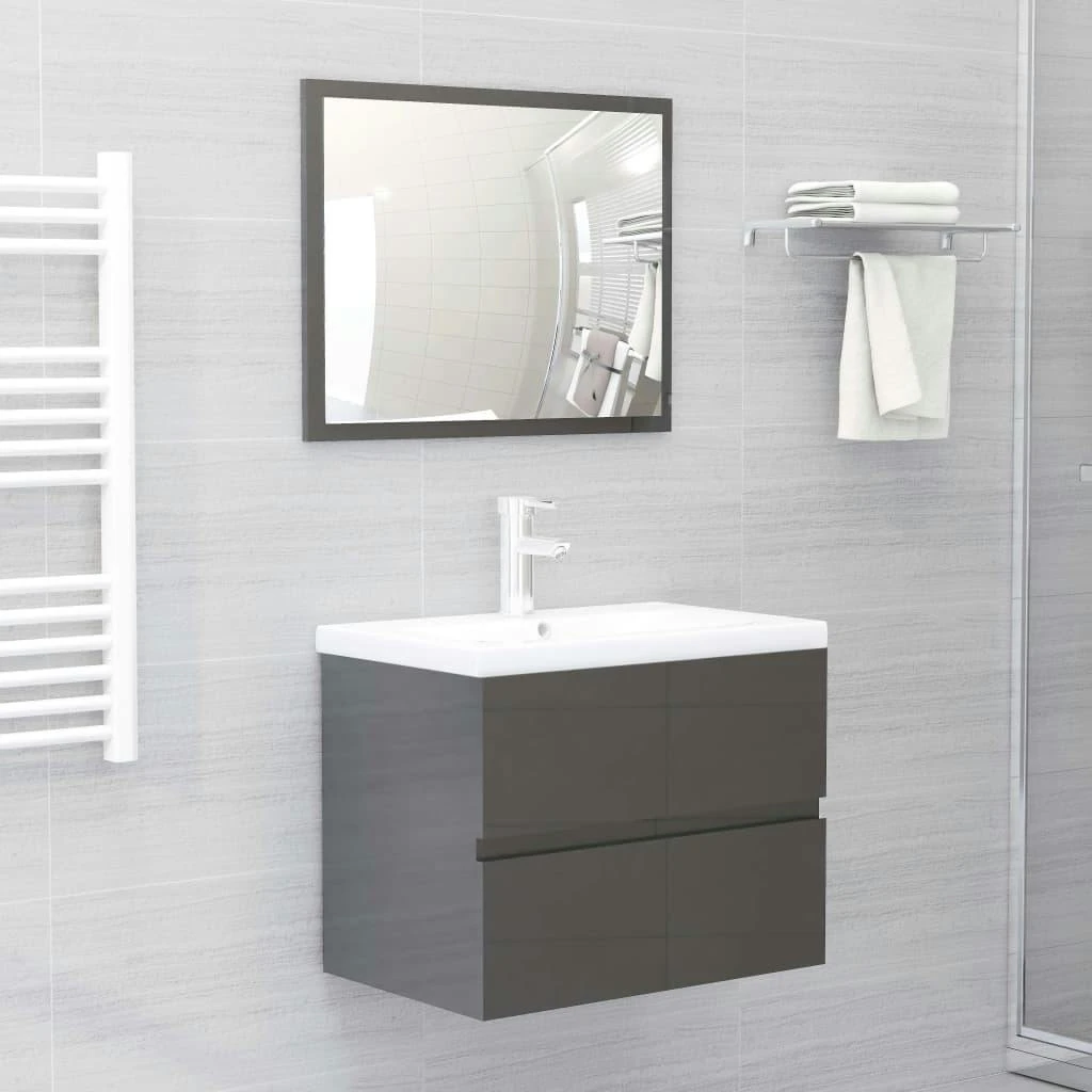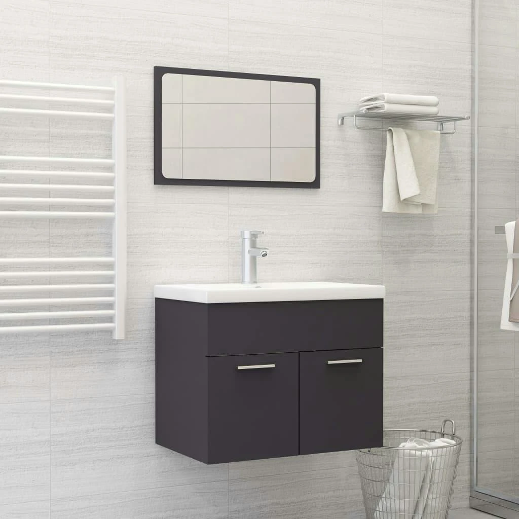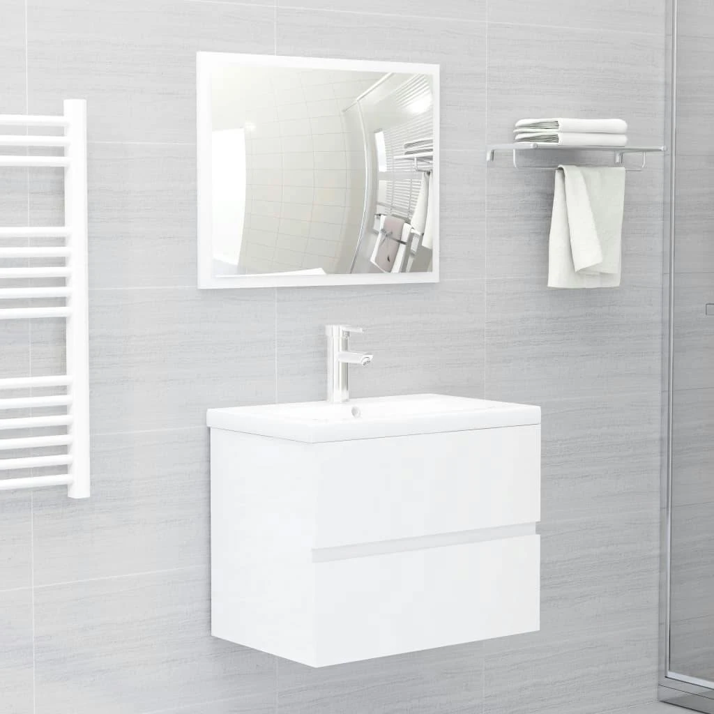 Das Möbelset mit Spiegel und Schrank besteht aus einem haltbaren und starken Holzwerkstoff. Dieser schicke Schrank verfügt über 1 Fach und 2 Türen und bietet ausreichend Stauraum in Ihrem Badezimmer. Auf dem Bad-Unterschrank kann ein Waschbecken eingebaut werden. Der Spiegel verleiht Ihrer Wohnkultur ein hervorragendes Aussehen. Darüber hinaus lässt sich dieses Badezimmermöbel-Set leicht mit einem feuchten Tuch reinigen.