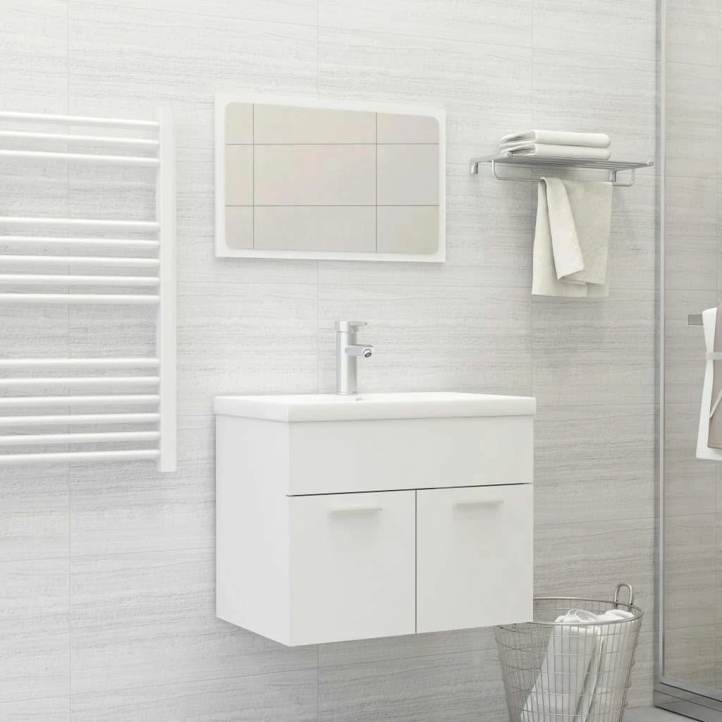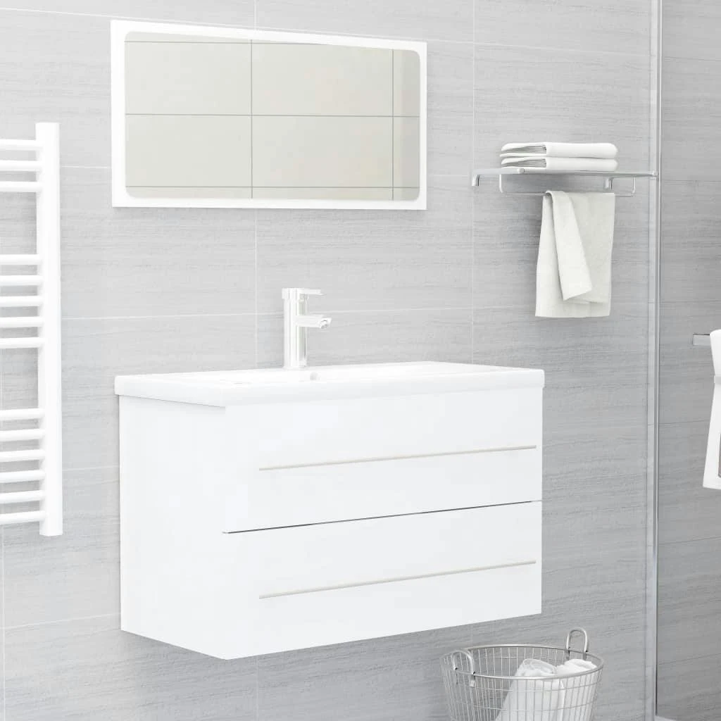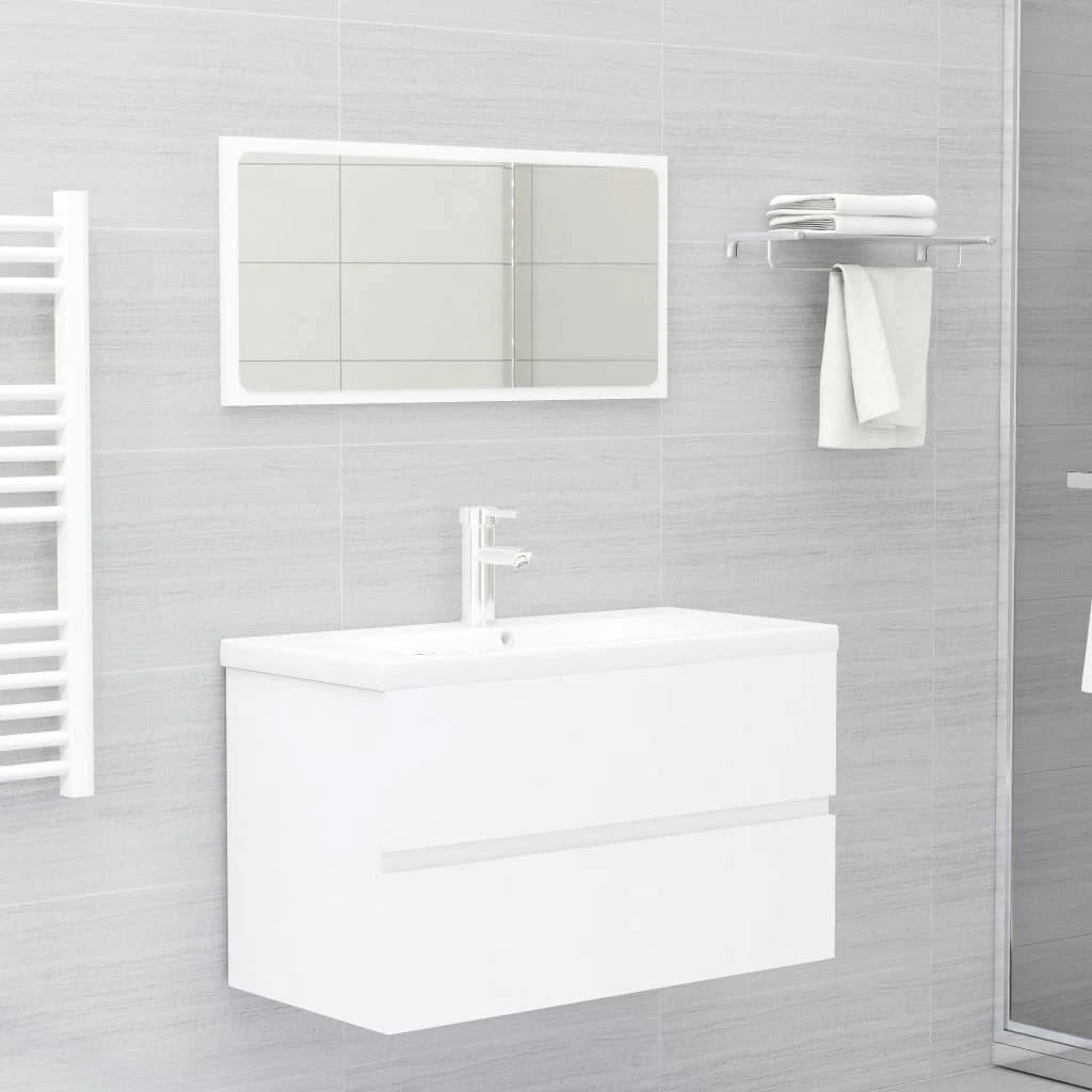 Das Möbelset mit Spiegel und Schrank besteht aus einem haltbaren und starken Holzwerkstoff. Der schicke Schrank verfügt über 1 Schublade und bietet ausreichend Stauraum in Ihrem Badezimmer. Auf dem Bad-Unterschrank kann ein Waschbecken eingebaut werden. Der Spiegel verleiht Ihrer Wohnkultur ein hervorragendes Aussehen. Darüber hinaus lässt sich dieses Badezimmermöbel-Set leicht mit einem feuchten Tuch reinigen.