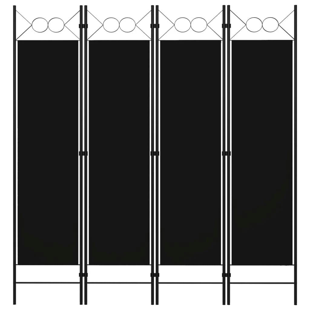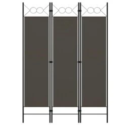 Dieser Raumteiler besteht aus einem pulverbeschichteten Eisenrahmen und Stoffschirmen und kann bei Nichtgebrauch leicht zusammengeklappt werden.