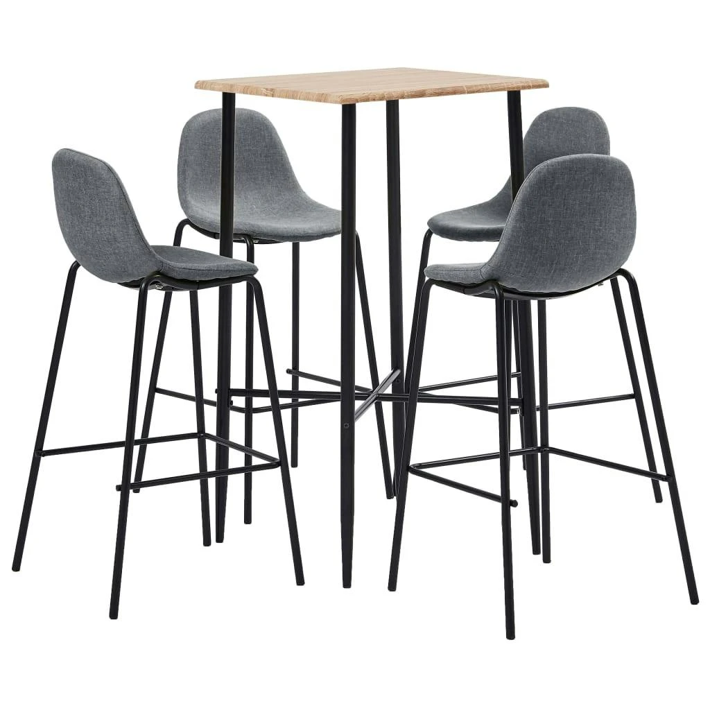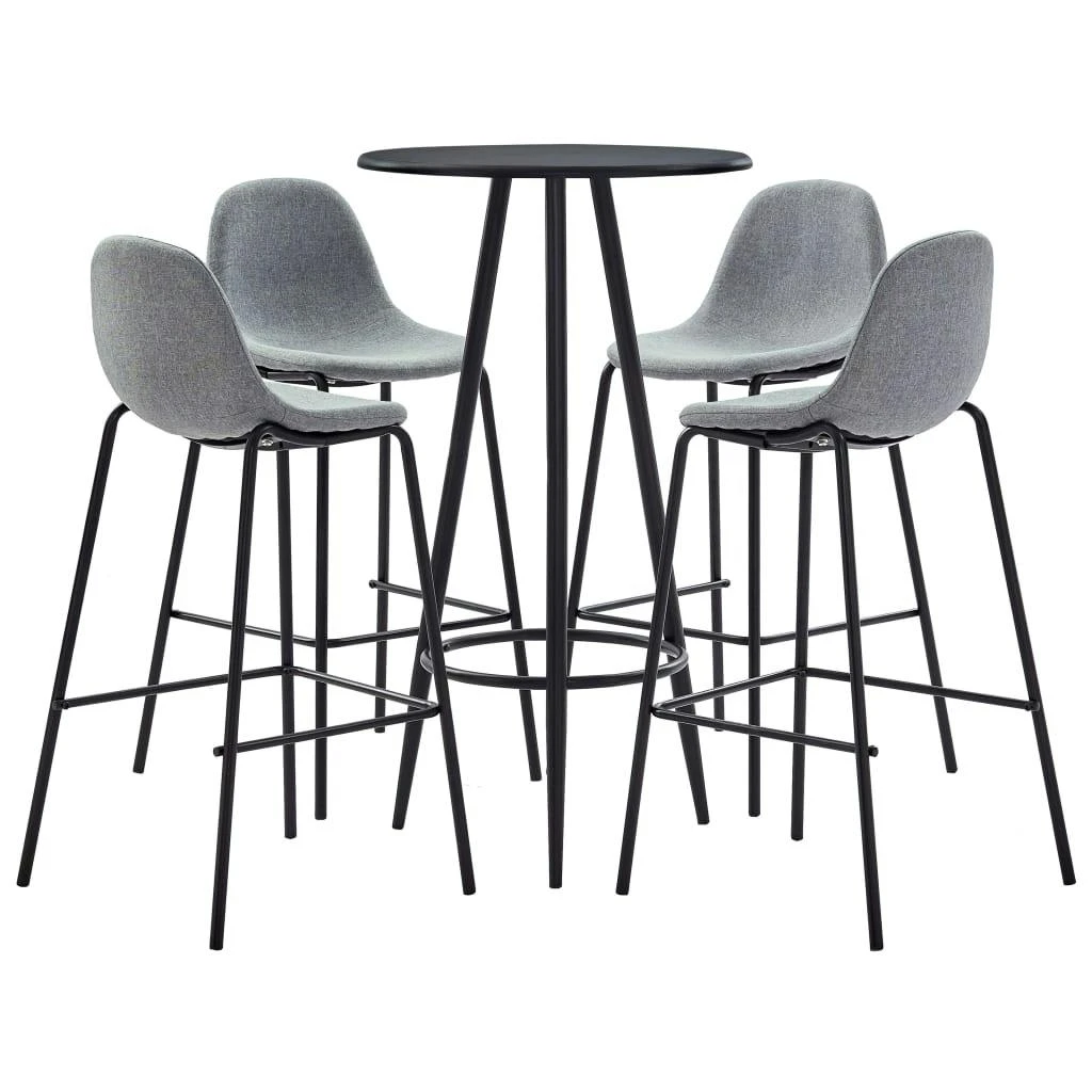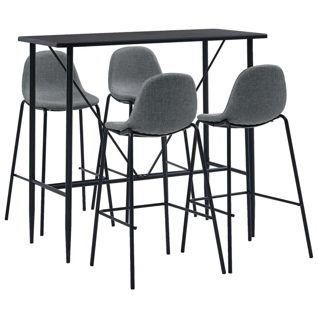Dieses Bar-Set mit modernem und zeitgemäßem Design passt perfekt zu modernen Wohnungen, Gärten, Bars, Pubs oder Restaurants. Das saubere und zeitgemäße Design passt zu jeder Inneneinrichtung. Die Tischplatte besteht aus pflegeleichtem MDF. Das pulverbeschichtete Stahlgestell trägt zur Stabilität und Robustheit des Stehtisches bei. Die Barstühle haben einen ergonomisch geformten Sitz mit integrierter Rückenlehne in moderner, geschwungener Optik. Außerdem sind sie leicht zu montieren. Dieses Barset ist ideal, um ein Glas Wein an der Bartheke zu genießen, einen Happen am Küchentresen zu essen oder als zusätzliche Sitzgelegenheit, wenn Sie Gäste einladen. Die Lieferung umfasst einen Bartisch und 4 Barstühle.