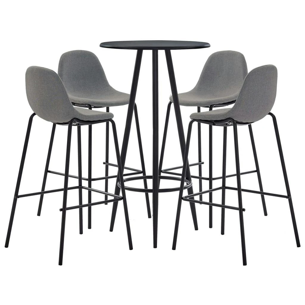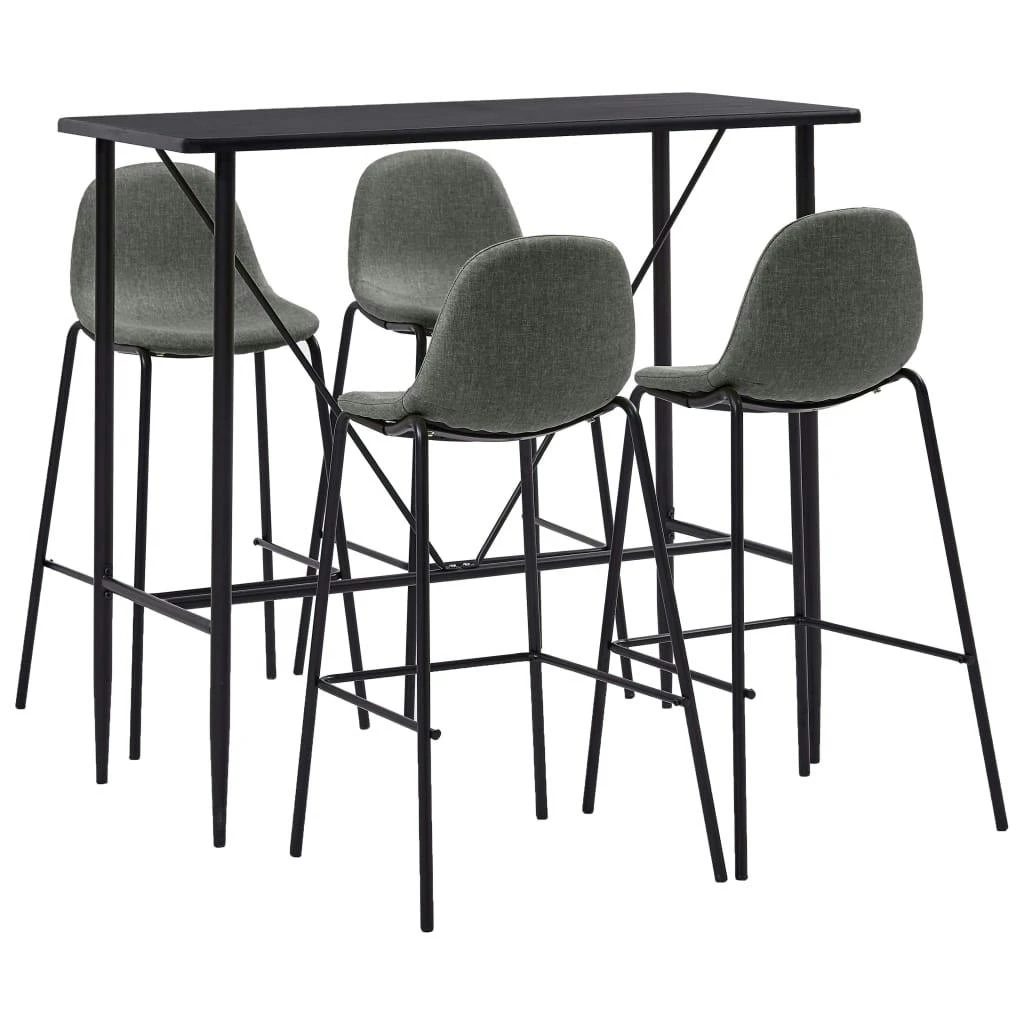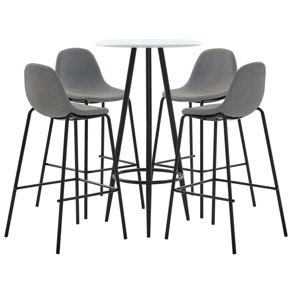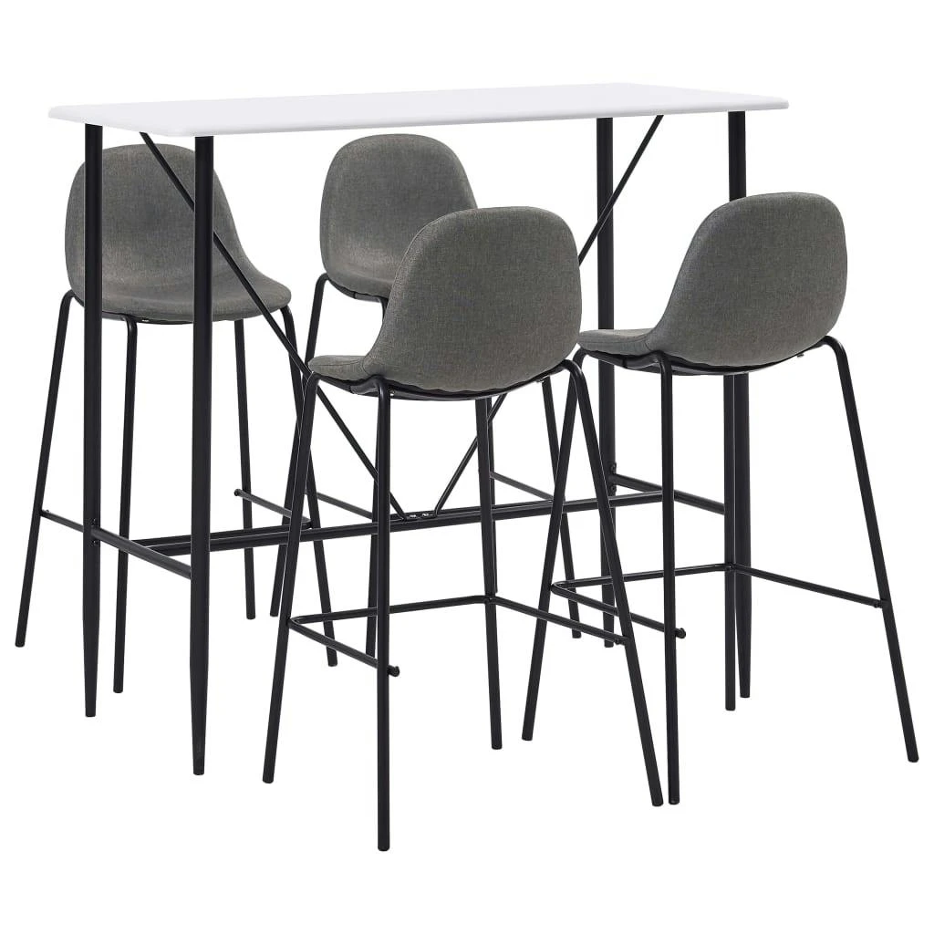 Dieses Bar-Set mit modernem und zeitgemäßem Design passt perfekt zu modernen Wohnungen, Gärten, Bars, Pubs oder Restaurants. Das saubere und zeitgemäße Design passt zu jeder Inneneinrichtung. Die Tischplatte besteht aus pflegeleichtem MDF. Das pulverbeschichtete Stahlgestell trägt zur Stabilität und Robustheit des Stehtisches bei. Die Barstühle haben einen ergonomisch geformten Sitz mit integrierter Rückenlehne in moderner, geschwungener Optik. Außerdem sind sie leicht zu montieren. Dieses Barset ist ideal, um ein Glas Wein an der Bartheke zu genießen, einen Happen am Küchentresen zu essen oder als zusätzliche Sitzgelegenheit, wenn Sie Gäste einladen. Die Lieferung umfasst einen Bartisch und 4 Barstühle.