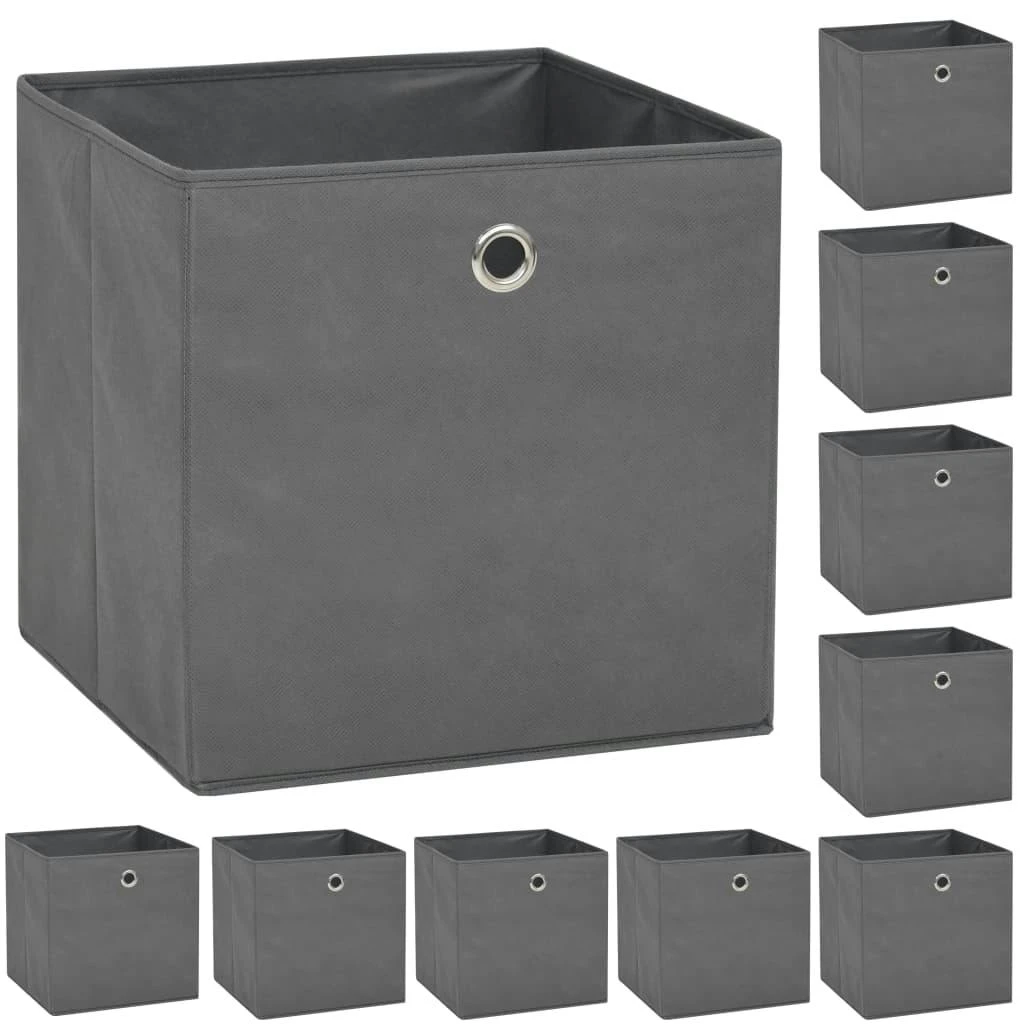 Die Lieferung umfasst zehn Aufbewahrungsboxen.