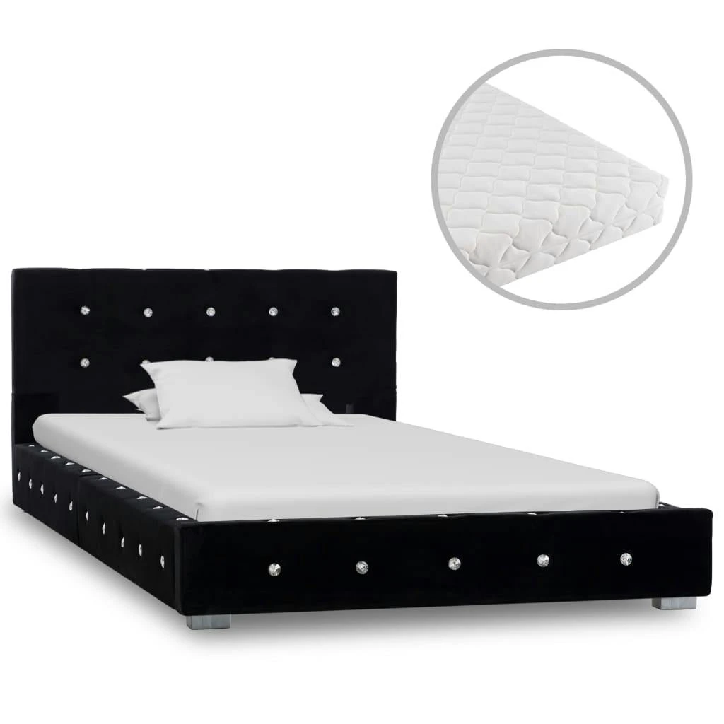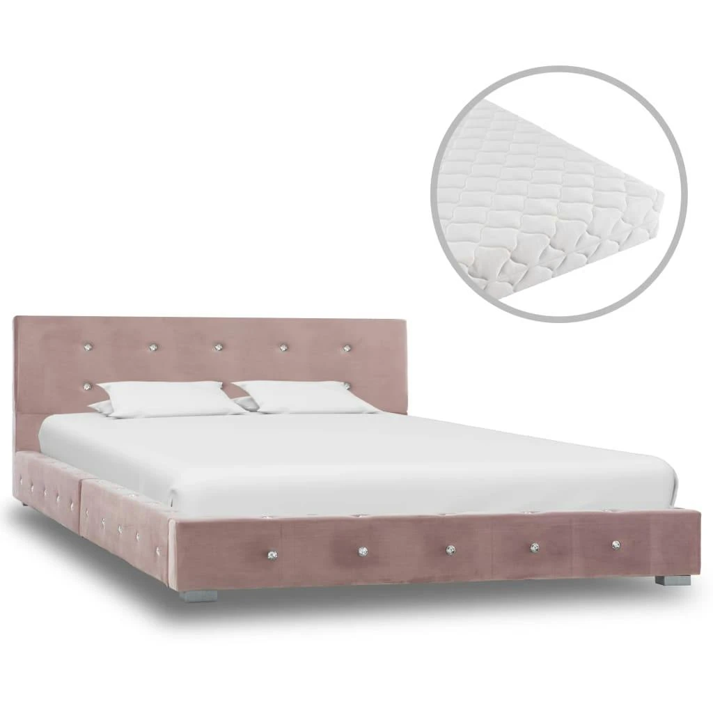 Dieser klassische Bettrahmen wird ganz bestimmt zum Mittelpunkt Ihres Schlafzimmers. Dieses Bettgestell zeichnet sich durch ein dezentes und zugleich elegantes Design aus und verleiht Ihrem Schlafzimmerdekor einen Hauch von elegantem Charme. Dieser Bettrahmen aus pulverbeschichtetem Eisen, Sperrholz und MDF ist äußerst robust und langlebig. Die pulverbeschichteten Stahlbeine verleihen dem Bett zusätzliche Haltbarkeit und Stabilität. Darüber hinaus strahlt das mit strapazierfähigem Samt bezogene Bett eine einladende Optik aus und ist leicht zu reinigen. Die mitgelieferte Matratze ist mit einer Extra-Dicke von ca. 17 cm besonders weich und bequem und verfügt über einen gepolsterten, waschbaren Bezug. Sie verteilt automatisch Ihr Gewicht und reduziert somit die Belastung an den Druckpunkten Ihres Körpers. Es wird dringend empfohlen, um Gelenkschmerzen, Schlaflosigkeit, Rückenschmerzen und Nackenschmerzen zu lindern. Die oberste Schicht der Matratze nimmt Feuchtigkeit auf und bietet eine gute Wärmeisolation. Darüber hinaus ermöglicht der waschbare Bezug eine einfache Reinigung der Matratze, so dass sie immer hygienisch bleibt. Die Matratze besteht aus 3 Schichten, von oben nach unten: 1 cm waschbarer gepolsterter Bezug, 15 cm 30 D Schaum, 1 cm waschbarer gepolsterter Bezug. Hinweis: Bitte beachten Sie, dass die Matratze aus hygienischen Gründen vom Umtausch ausgeschlossen ist, wenn die Verpackung geöffnet oder entfernt wurde.