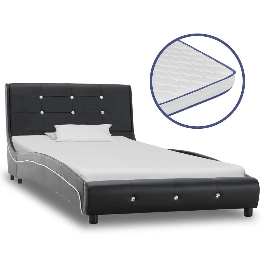 Dieser klassische Bettrahmen wird ganz bestimmt zum Mittelpunkt Ihres Schlafzimmers. Dieser Bettrahmen, der sich durch ein zurückhaltendes und dennoch elegantes Design auszeichnet, verleiht Ihrem Schlafzimmerdekor einen Hauch von elegantem Charme. Aus Eisen und Holz gefertigt, ist der Bettrahmen äußerst robust und langlebig. Die pulverbeschichteten Stahlbeine verleihen dem Bett zusätzliche Haltbarkeit. Darüber hinaus wirkt das mit strapazierfähigem Kunstleder bezogene Bett einladend aus und ist leicht zu reinigen. Die mitgelieferte Memory-Schaum-Matratze bietet mit einer zusätzlichen Dicke von ca. 17 cm unvergleichliche Viskosität und Dichte und kommt nach Gebrauch schnell in die ursprüngliche Form zurück. Des Weiteren besteht die Matratze aus 5 Schichten, von oben nach unten: Bezug aus Polyestergewebe, 2 cm 40 D Memory-Schaum, 14 cm normaler Schaum, 1 cm normaler Schaum und Bezug aus Polyestergewebe. Bitte beachten Sie, dass die Matratze aus hygienischen Gründen nicht retourniert werden kann, im Falle, dass die Verpackung bereits geöffnet bzw. entfernt worden ist.