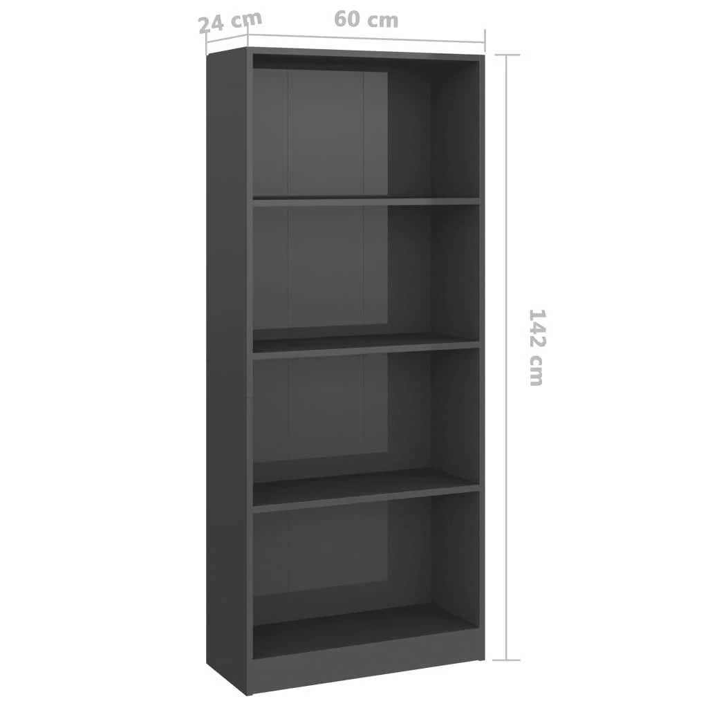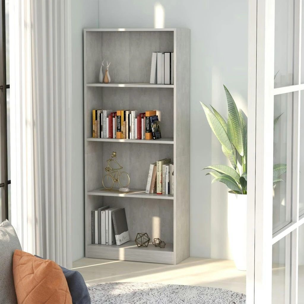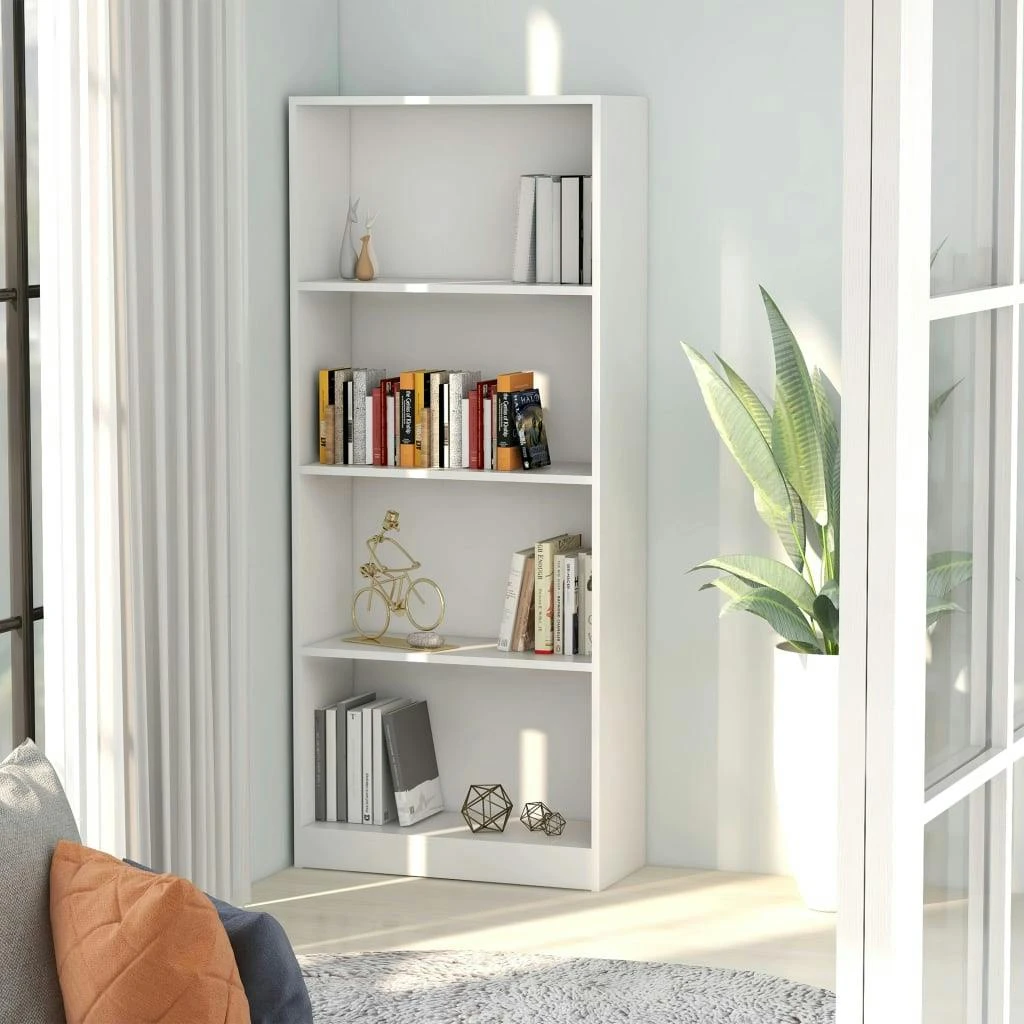 Modernes, stilvolles und minimalistisches Design machen diesen Bücherschrank für die meisten Räume geeignet. Er lässt sich perfekt in die Dekoration Ihres Zuhauses integrieren und verleiht Ihrer bestehenden Wohnungseinrichtung eine attraktive Modernität. Aus hochwertiger Spanplatte gefertigt, ist dieses Bücherregal stabil und langlebig. Der hohe Bücherschrank verfügt über vier geräumige Fächer, in denen Sie alles aufbewahren und ausstellen können, z. B. Sammlerstücke, Bücher, Schnickschnack, gerahmte Fotos usw. Der Bücherschrank ist einfach zu montieren.