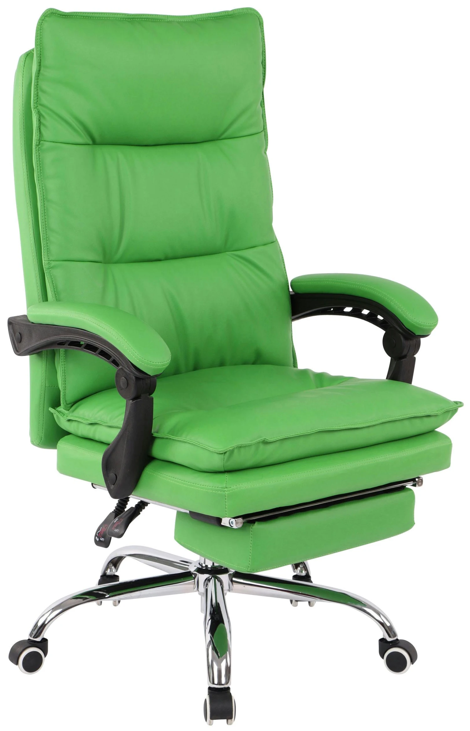 Dieser bequeme, drehbare Bürostuhl ist eine ausgezeichnete benutzerfreundliche und dekorative Sitzgelegenheit für Büro und Zuhause. Dieser Drehstuhl ist mit weichem PVC bezogen, was ihn sehr bequem und langlebig macht. Dank des Gasdruckfeders ist der Sitz höhenverstellbar. Dieser Bürosessel ist um 360 Grad schwenkbar und lässt sich dank der praktischen Rollen einfach bewegen.