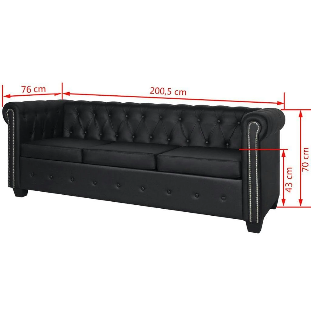 Das Chesterfield Sofa-Set, bestehend aus einem 2-Sitzer und einem 3-Sitzer, ist die perfekte Mischung aus Komfort und Eleganz und wird jedes Heim oder Büro großartig ergänzen. Beide Sofas verfügen über die typisch gebogenen Armlehnen und die mit Knöpfen verzierte Lehnenfläche, sowie den Nietenbesatz des Chesterfield Designs – mit ihnen hält ein Hauch von Luxus, Klasse und Stil Einzug in Ihren Wohn- oder Arbeitsraum! Die dick gepolsterte Sitzfläche ist sehr bequem, während die elegante Struktur sowohl stabil als auch strapazierfähig ist. Der qualitativ hochwertige Kunstlederbezug ist einfach abzuwaschen und beanspruchbar. Die Lieferung umfasst 1 x 2-Sitzer-Sofa und 1 x 3-Sitzer-Sofa.