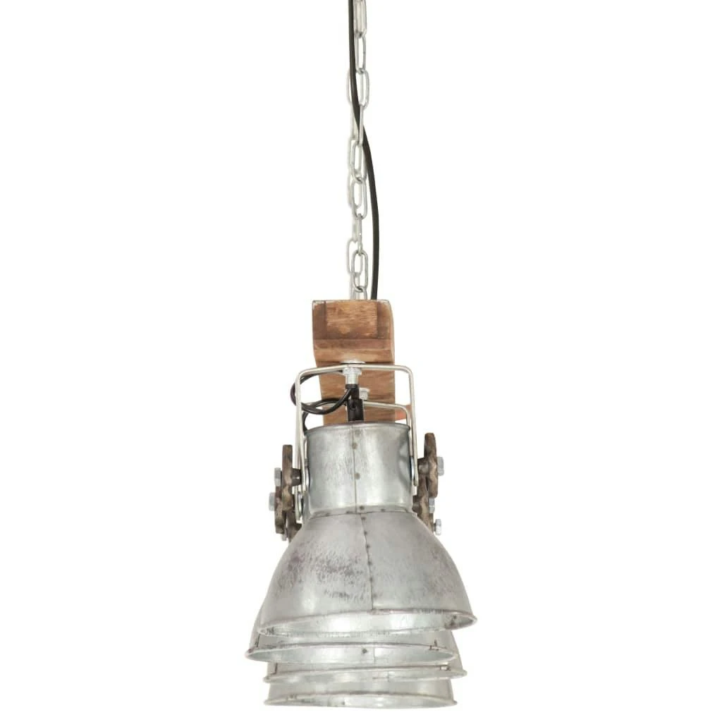 Diese Deckenleuchte mit einem Schirmdurchmesser von 17 cm ist mit Sicherheit ein Highlight im Wohnzimmer, Esszimmer, in der Küche und mehr. Die Lampenschirme aus Eisen mit silbernem Finish und massivem Mangoholz mit verwittertem braunem Finish passen perfekt zu jedem Interieur im Landhaus- oder Industriestil. Die Deckenleuchte mit 4 Lampenschirmen verfügt über eine E27-Fassung für eine Glühlampe mit maximal 25 Watt. Sie können E27-Leuchtmittel mit verschiedenen Lichtfarben auswählen und einsetzen, um eine Atmosphäre der Entspannung und Ruhe zu schaffen. Bitte beachten: Diese Lampe im Industriestil weist Unvollkommenheiten am Lampenschirm auf, was der Lampe ihre eigene Identität verleiht und sie durch ihre raue Optik einzigartig macht. Die Leuchtmittel sind nicht im Lieferumfang enthalten.