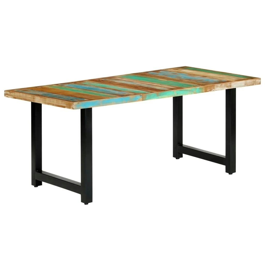 Dieser markante Holz-Esstisch im industriellen Stil ist eine unverwechselbare Erweiterung zu Ihrer Küche oder Ihrem Esszimmer. Dieser Esstisch ist aus massivem Recyclingholz gefertigt, das aus Fußböden, Decken- und Stützbalken von alten Abriss-Gebäuden stammt. Verschiedene Holzarten wie Kiefer, Teak, Buche, Eiche, Zeder, Mango, Akazie usw. finden sich darin wieder und verleihen dem Möbelstück die Eigenschaften des jeweiligen Holzes. Wiedergewonnenes Holz ist bereits gealtert, verwittert und getrocknet, sodass es nicht schrumpft oder verbiegt. Gebrauchsspuren und die sichtbare Maserung erzählen die Geschichte des Holzes und verleihen dem Tisch ein einzigartiges Aussehen. Die exquisite Handwerkskunst trägt zum spektakulären Retro-Stil des Tisches bei. Die pulverbeschichteten Stahlbeine runden den industriellen Look ab. Jeder Schritt des Prozesses wird mit größter Sorgfalt ausgeführt, sei es Polieren oder Lackieren. Unser Esstisch ist einfach zu montieren. Wichtiger Hinweis: Massives Altholz weist eine natürliche Maserung auf und macht dadurch jeden unserer Esstische zu einem Unikat; die Lieferung erfolgt zufällig.Achtung: Dieses Produkt enthält mehrere Pakete. Wir versuchen, alles am selben Tag zu liefern, aber in einigen Fällen können Pakete an verschiedenen Tagen ankommen.