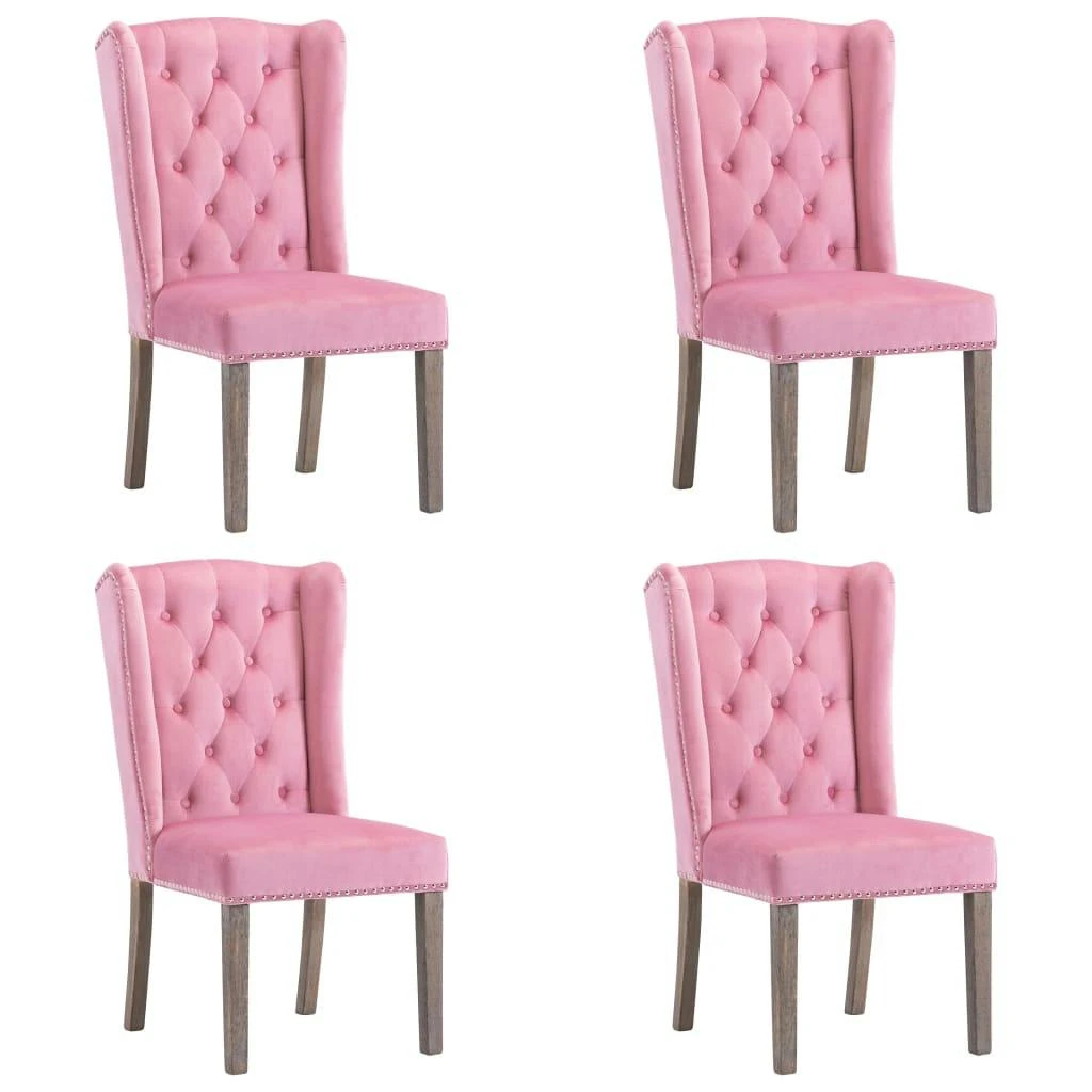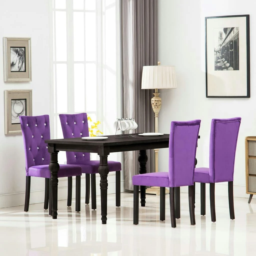Verleihen Sie Ihrer Inneneinrichtung einen Hauch von Eleganz mit unserem Esszimmerstuhl-Set aus Samt! Die Stühle sind mit bildschönen Kristallknöpfen bestickt, was ihnen einen glamourösen Look verleiht.