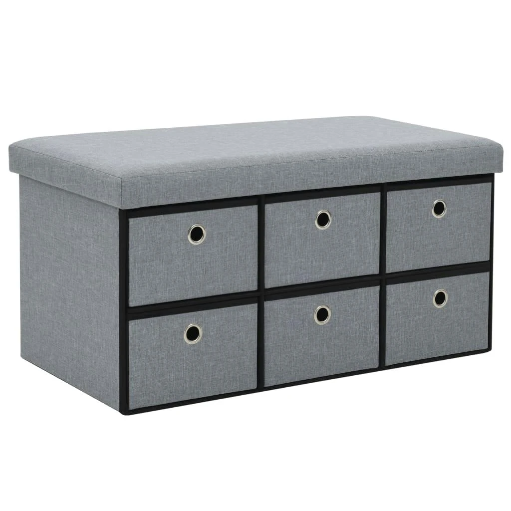 Die Aufbewahrungsbank ist aus MDF gefertigt und mit Gewebe in Leinenoptik bezogen, das langlebig, strapazierfähig und bequem ist. Dank der grauen Farbe sind Flecken oder Staub nicht so leicht sichtbar. Sie verfügt außerdem über eine abnehmbare Sitzoberseite und bietet viel Stauraum, um eine Vielzahl von verschiedenen Gegenständen außer Sichtweite aufzubewahren. Bei Nichtgebrauch kann die Truhe platzsparend zusammengeklappt werden.