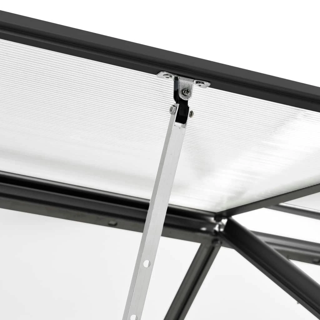 Dieses geräumige Gewächshaus hat eine Gesamtfläche von 1,33 m². Es kann eine beträchtliche Anzahl von Pflanzen aufnehmen und ist eine großartige Lösung, um Ihre Pflanzen vor kaltem Wetter zu schützen. Dieses solide Gewächshaus aus Polycarbonatplatten ist UV-beständig und wärmeisoliert. Das Gewächshaus verfügt über eine robuste Aluminiumkonstruktion, die für zusätzliche Stabilität sorgt. Das Rinnensystem ermöglicht einen effektiven Wasserablauf und die Dachöffnungen sorgen für eine optimale Belüftung an heißen Tagen. Die Dachpaneele werden mit Metallklammern befestigt, um Haltbarkeit und Langzeitnutzung zu gewährleisten. Bitte beachten Sie: Das Fundament ist nicht enthalten. Das das Dach dieses Gewächshauses kann starken Schneefällen nicht standhalten.