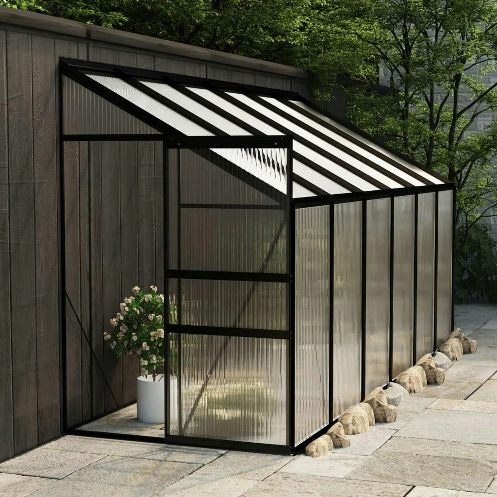 Dieses geräumige Gewächshaus hat eine Gesamtgrundfläche von 4,71 m². Es kann eine beträchtliche Anzahl von Pflanzen aufnehmen und ist eine großartige Lösung, um Ihre Pflanzen vor dem kalten Wetter zu schützen. Das Gewächshaus besteht aus einer PC-Platte, die durchsichtig ist und es Ihnen ermöglicht, das Wachstum der Pflanzen zu beobachten. Das Gewächshaus verfügt über eine robuste und wartungsfreie Aluminiumkonstruktion für zusätzliche Stabilität. Die Dachentlüftung sorgt an heißen Tagen für optimale Belüftung. Dachpaneele werden mit Metallklammern befestigt, um Haltbarkeit und Langzeitgebrauch zu gewährleisten. Bitte beachten Sie, dass der Fundamentrahmen nicht im Lieferumfang enthalten ist und dass das Dach dieses Gewächshauses starkem Schneefall nicht standhalten kann.