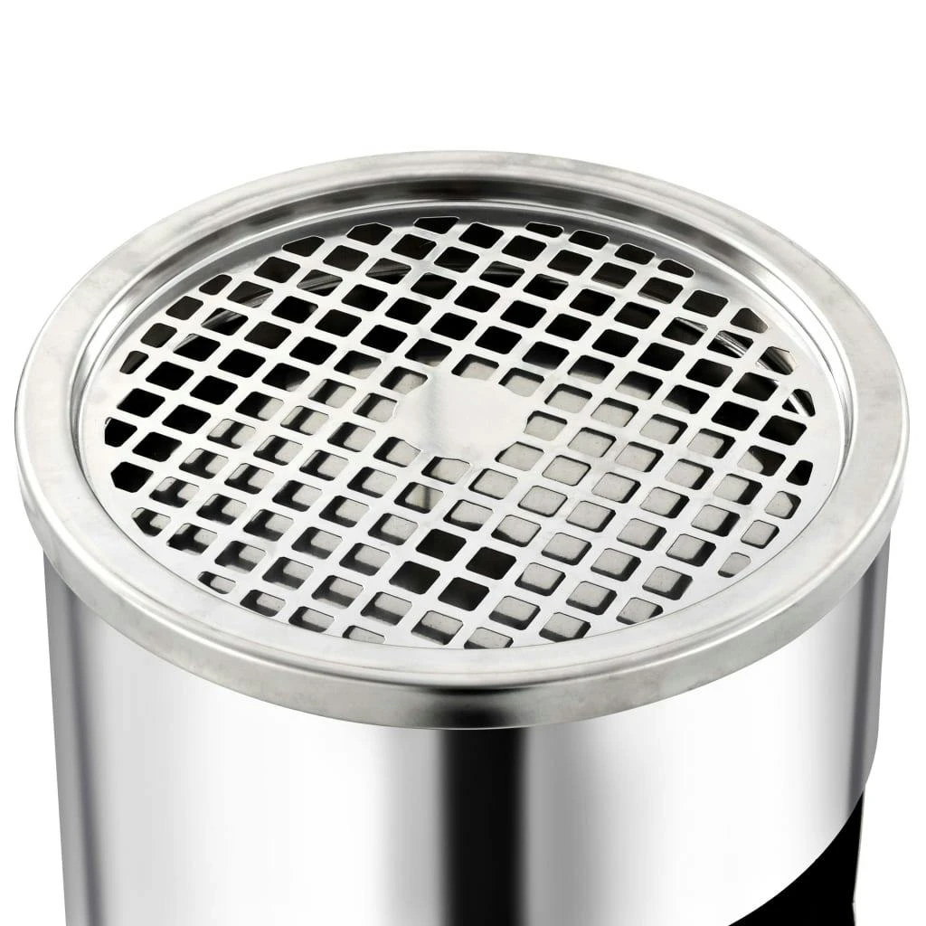 Dieser hochwertige Mülleimer zeichnet sich durch Edelstahl-Eleganz und ein Aschenbecher-Design aus und überzeugt nicht nur durch sein raffiniertes Design, sondern auch durch seine Funktionalität. Unser Mülleimer verfügt über ein großes Fassungsvermögen für Recyclingabfälle und ist mit einem Aschenbecher an der Oberseite versehen. Er lässt sich sowohl in Innen- als auch im Außenbereichen wie in Hotels, Restaurants, vor dem Haus, in Büros oder an anderen öffentlichen Orten verwenden. Hergestellt aus Edelstahl, ist er nicht nur robust, sondern verformt sich und rostet auch nicht leicht, was eine lange Lebensdauer gewährleistet. Mit den herausnehmbaren Einsätzen lässt sich der Aschenbecher einfach entleeren. Der innere Behälter kann mit großer Leichtigkeit herausgenommen werden, um gereinigt und gewaschen zu werden.