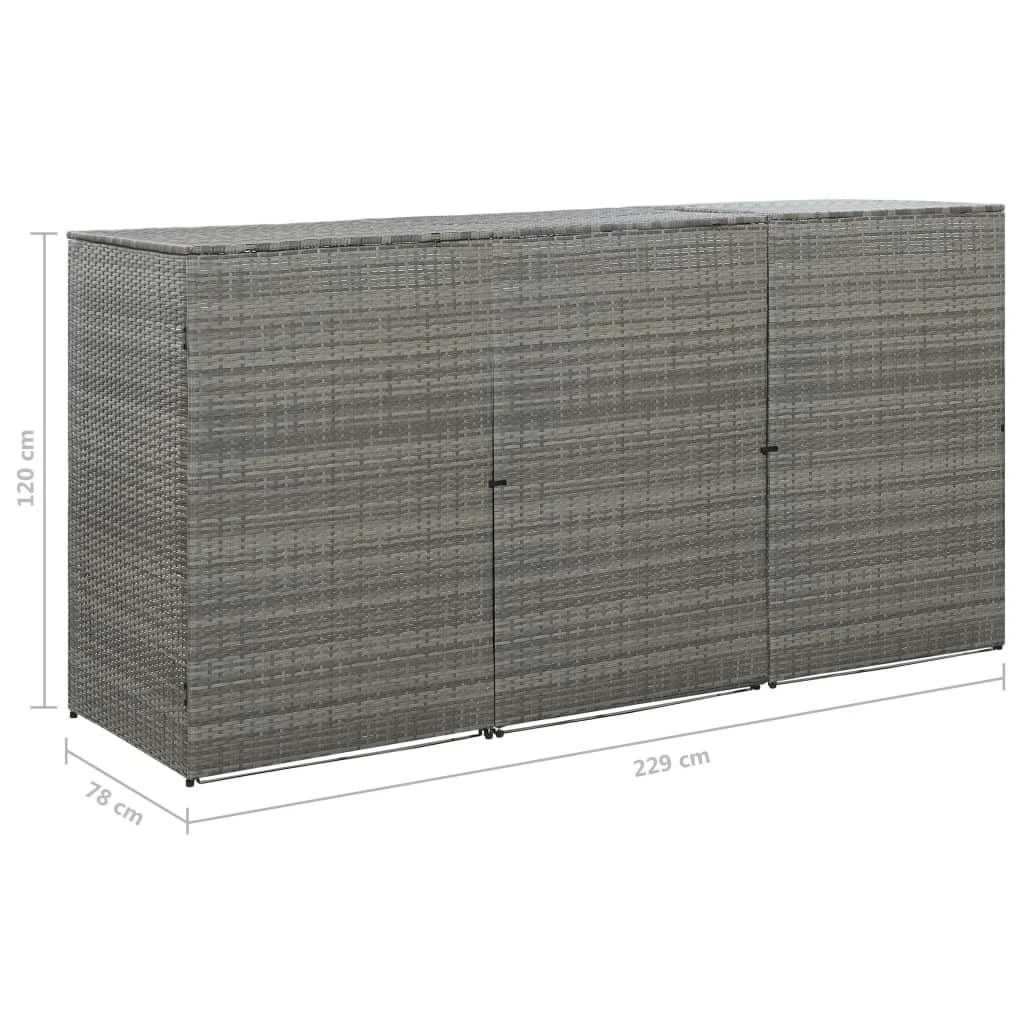 Diese Mülltonnenbox ist die ideale Lösung, um Ihre Mülltonne außer Sicht im Garten aufzubewahren. Die Müllbox verfügt über aufklappbare Deckel, die für einen einfachen Zugang zu den Mülltonnen sorgen. Zudem hat die Müllbox Türen mit Verriegelungssystem an der Frontseite, sodass die Mülltonne einfach herausgenommen und entleert werden kann. So werden auch unerwünschte Tiere ferngehalten. Aus PE-Rattan gefertigt, ist diese Mülltonnenbox sowohl robust und langlebig als auch wasserfest und verrottungsbeständig und fügt sich perfekt in Ihren Garten ein. Dieser Artikel ist leicht zu montieren. Bitte beachten Sie, dass die Mülltonnen nicht im Lieferumfang enthalten sind. Hinweis: Wir empfehlen Ihnen, das Produkt bei Regen, Schnee oder Frost abzudecken.Achtung: Dieses Produkt enthält mehrere Pakete. Wir versuchen, alles am selben Tag zu liefern, aber in einigen Fällen können Pakete an verschiedenen Tagen ankommen.