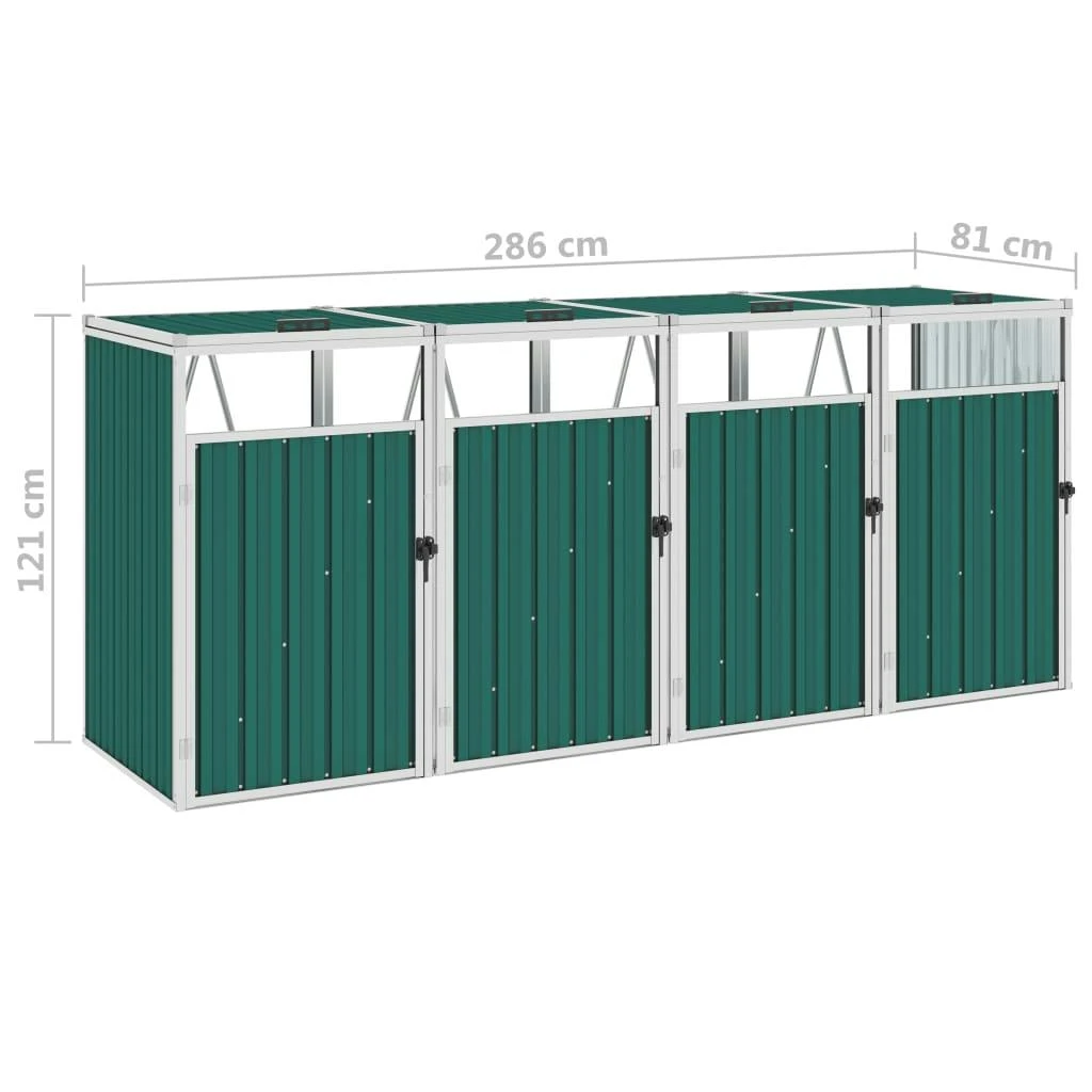 Bewahren Sie Ihre Mülltonnen außer Sichtweite im Garten auf und sorgen Sie mit unserer Mülltonnebox für Ordnung und Ästhetik in Ihren Außenbereichen! Diese Mülltonnenbox für vier Mülltonnen ist aus robustem, verzinktem Stahl gefertigt, wodurch sie sehr stabil und pflegeleicht ist. Sie ist mit vier Türen an der Vorderseite und schwarzen Kunststoff-Türgriffen ausgestattet. So können die Mülltonnen leicht herausgenommen und entleert werden. Die Box verfügt über vier Klappdeckel, die zum einfachen Einwerfen von Müll geöffnet werden können. Diese Mülltonnenbox ist zudem leicht zu montieren.Achtung: Dieses Produkt enthält mehrere Pakete. Wir versuchen, alles am selben Tag zu liefern, aber in einigen Fällen können Pakete an verschiedenen Tagen ankommen.