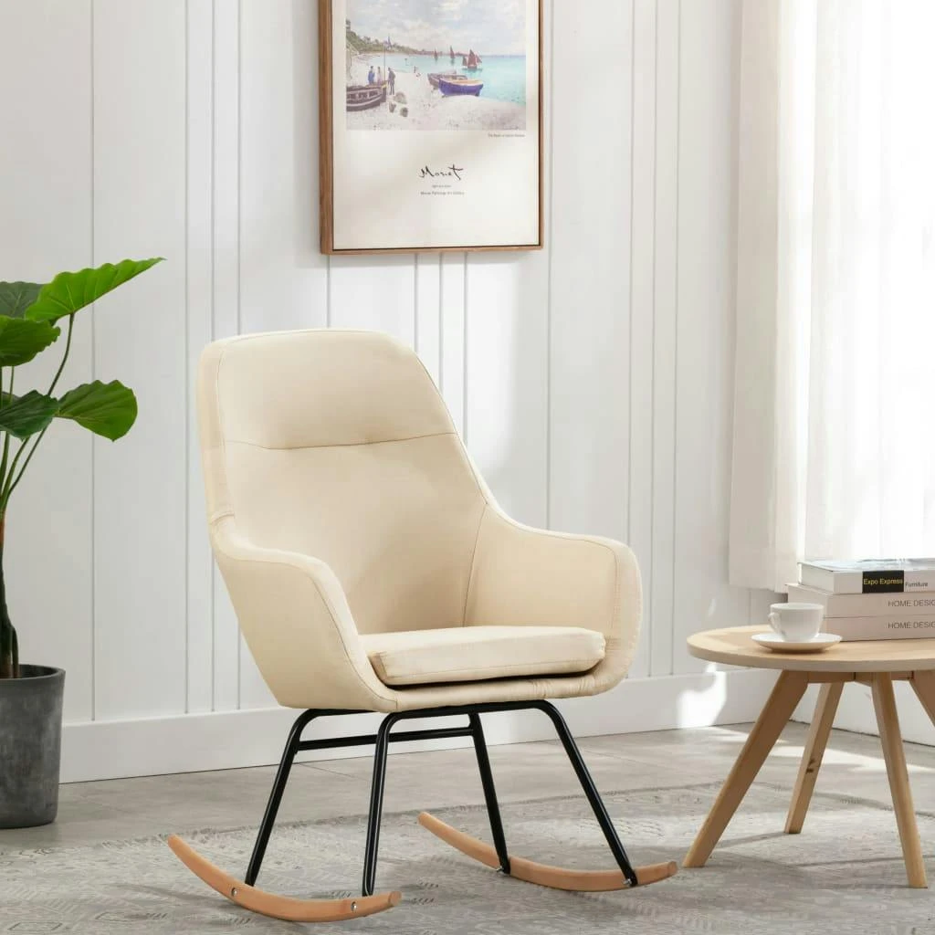 Der Schaukelstuhl ist mit weichem Stoff gepolstert und hat einen pulverbeschichteten Metallrahmen, wodurch er stabil ist und man weich sitzt. Das dick gepolsterte Kissen, das abnehmbar und leicht zu reinigen ist, bietet Ihnen zusätzlichen Sitzkomfort. Darüber hinaus bieten die Buchenholzfüße eine hohe Stabilität. Mit dem langen Fußdesign lässt sich der Stuhl nicht leicht umkippen.