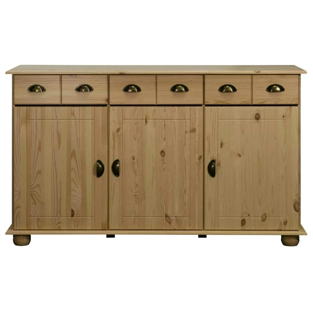 Dieses Sideboard im Vintage-Stil ist die perfekte Wahl für Ihr Wohnzimmer. Der Aufbewahrungsschrank besteht aus massivem Kiefernholz, was ihn stabil und langlebig macht. Die angebrachten Griffe erleichtern das Öffnen und Schließen der Tür und Schublade. Mit drei Schubladen und drei Türen ausgestattet, bietet dieser Schrank reichlich Stauraum für Ihre Sachen. Darüber hinaus bietet die robuste Oberplatte den idealen Platz, um Dekoartikel wie Fotorahmen, Topfpflanzen usw. zur Schau zu stellen. Wichtiger Hinweis: Farbe und Maserung variieren von Stück zu Stück, so dass jedes Möbelstück einzigartig ist. Die Lieferung erfolgt nach dem Zufallsprinzip.Achtung: Dieses Produkt enthält mehrere Pakete. Wir versuchen, alles am selben Tag zu liefern, aber in einigen Fällen können Pakete an verschiedenen Tagen ankommen.