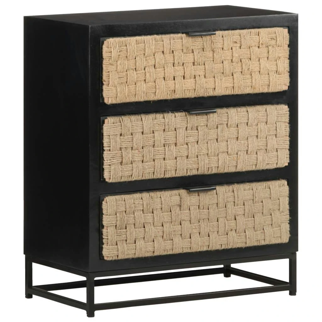Dieses Holz-Sideboard verleiht Ihrem Wohnzimmer einen industriellen Stil. Der Nachtschrank besteht aus massivem Mangoholz, einem tropischen Hartholz, das belastbar und verschleißfest ist. Somit ist dieses Möbelstück stabil und langlebig. Die Schublade besteht aus natürlicher Jute und das Eisengestell sorgt für zusätzliche Stabilität. Der Schrank verfügt über drei Schubladen, die ausreichend Stauraum bieten. Wichtiger Hinweis: Farbe und Maserung variieren von Stück zu Stück, so dass jedes Möbelstück einzigartig ist. Die Lieferung erfolgt nach dem Zufallsprinzip.
