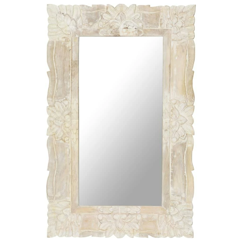 Massives Mangoholz ist ein tropisches Hartholz, das belastbar und verschleißfest ist. Die exquisite Handwerkskunst und die schönen Holzmaserungen machen jedes Stück zu einem Unikat. Das handgeschnitzte Muster trägt zur Schönheit des Spiegels bei.