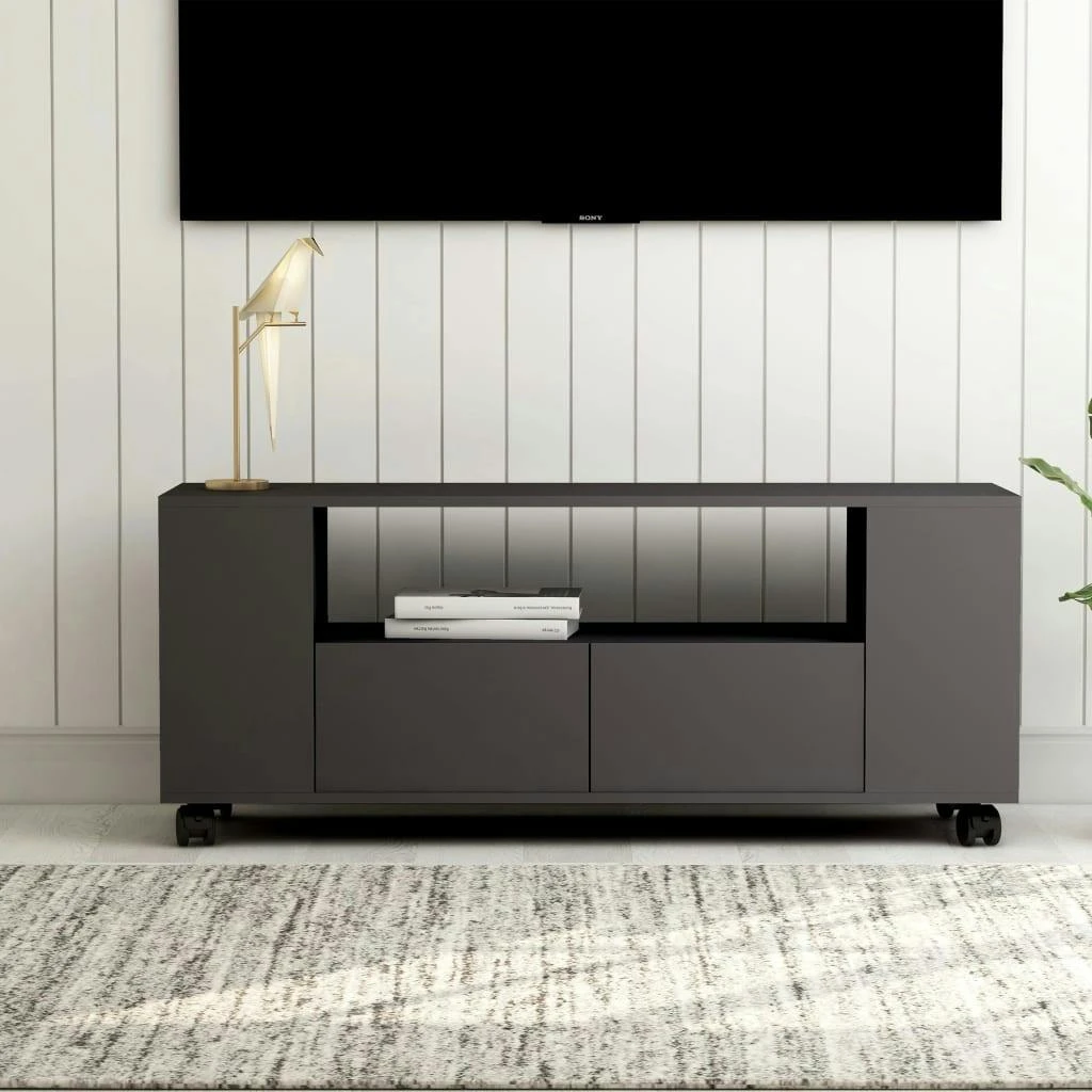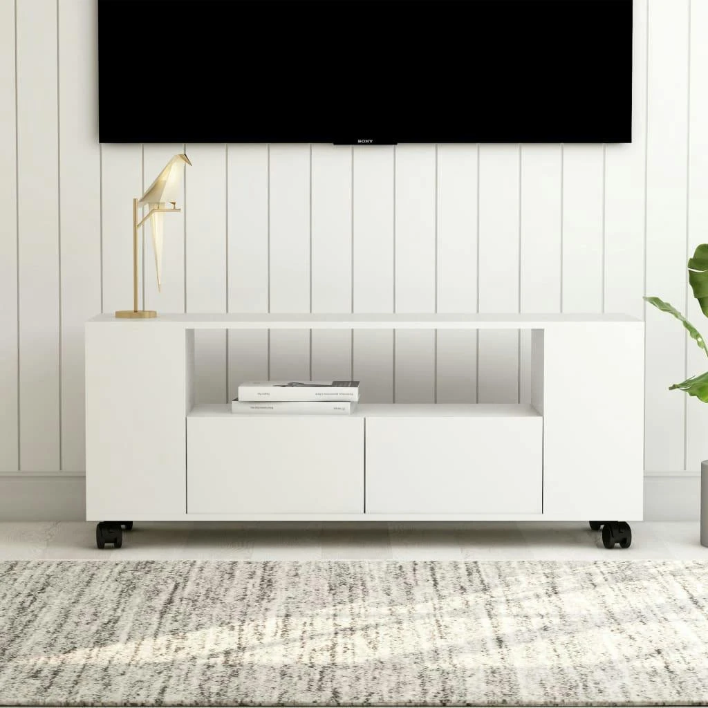 Dieser klassische TV-Schrank aus hochwertigem Holzwerkstoff ist eine zeitlose Bereicherung für Ihr Zuhause. Er verfügt über 2 Schubladen, Seitenfächer und ein offenes Regal zur Aufbewahrung von Kleinigkeiten und Multimedia-Geräten, Spielekonsolen und Zeitschriften. Darüber hinaus lässt sich der TV-Schrank mit einem feuchten Tuch leicht reinigen.