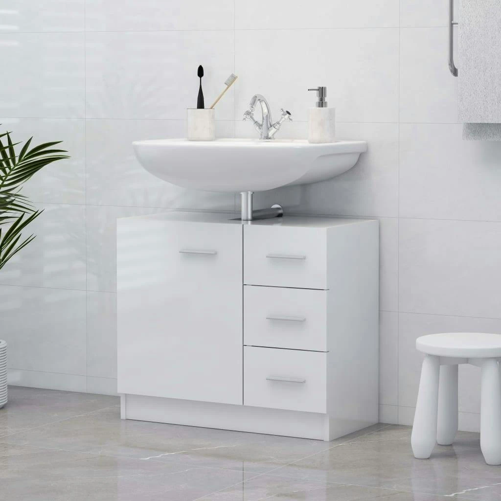 Mit diesem Waschbeckenunterschrank können Sie zusätzlichen Platz im Ihrem Badezimmer schaffen. Die klaren Linien und das schlanke Design werten jedes Badezimmer auf. Dieser Badschrank besteht aus Spanplatte und ist daher robust und stabil. Der Waschbeckenunterschrank verfügt über 1 Schublade und bietet so zusätzlichen Platz für eine Vielzahl von Gegenständen in Ihrem Badezimmer. Die Oberseite des Schranks ist ideal zum Einbauen des Waschbeckens. Zusätzlich ist der Schrank einfach mit einem feuchten Tuch zu reinigen. Bitte beachten: das Waschbecken ist nicht im Lieferumfang enthalten.